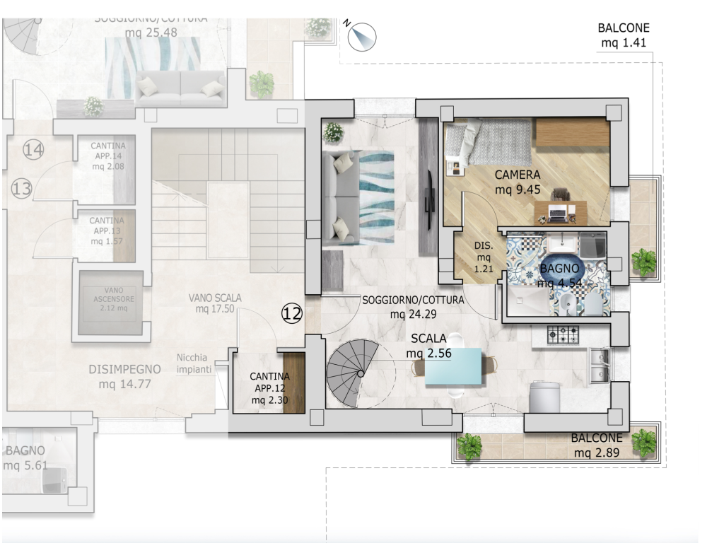 La qualità si vede anche nelle finiture, con gres porcellanato di prima scelta, infissi performanti in PVC, tapparelle elettriche e portoncini blindati di alta sicurezza. Anche gli spazi comuni sono curati: ascensore con fermata al piano garage, predisposizione per fibra ottica, smart home e impianto fotovoltaico condominiale.