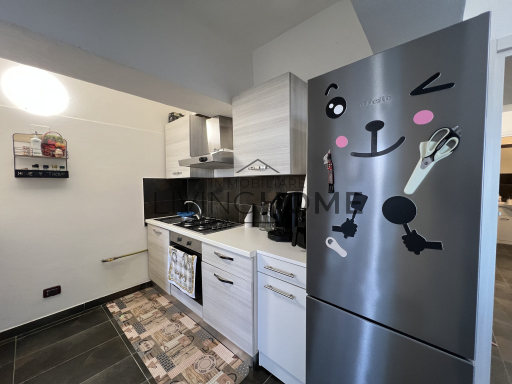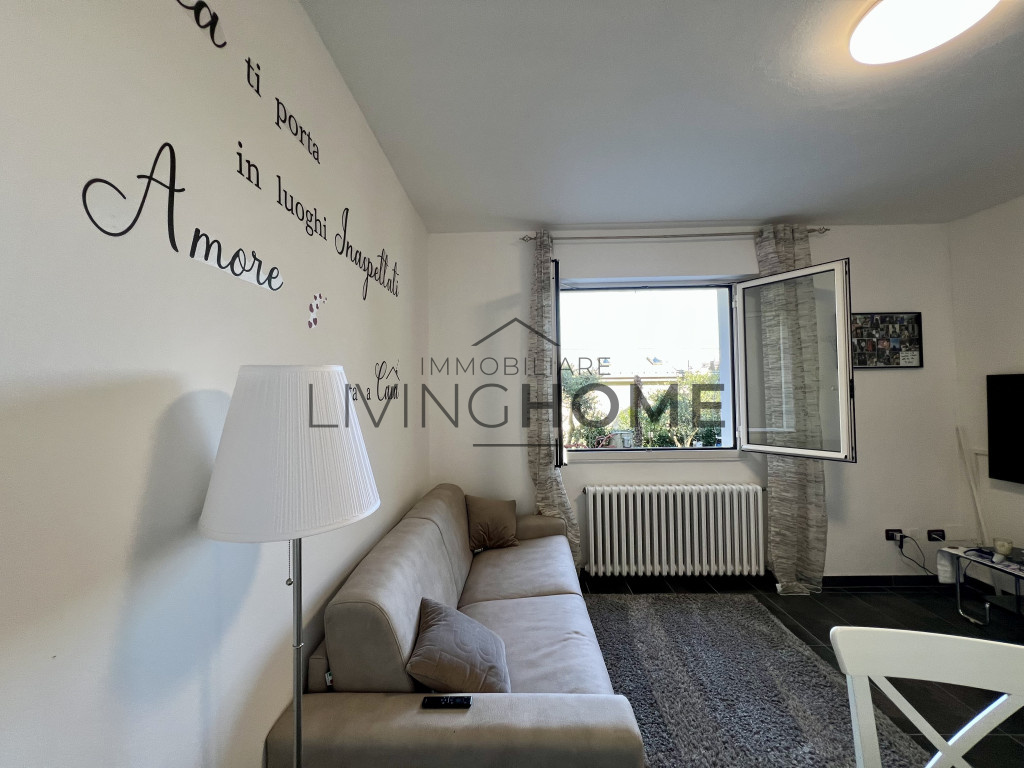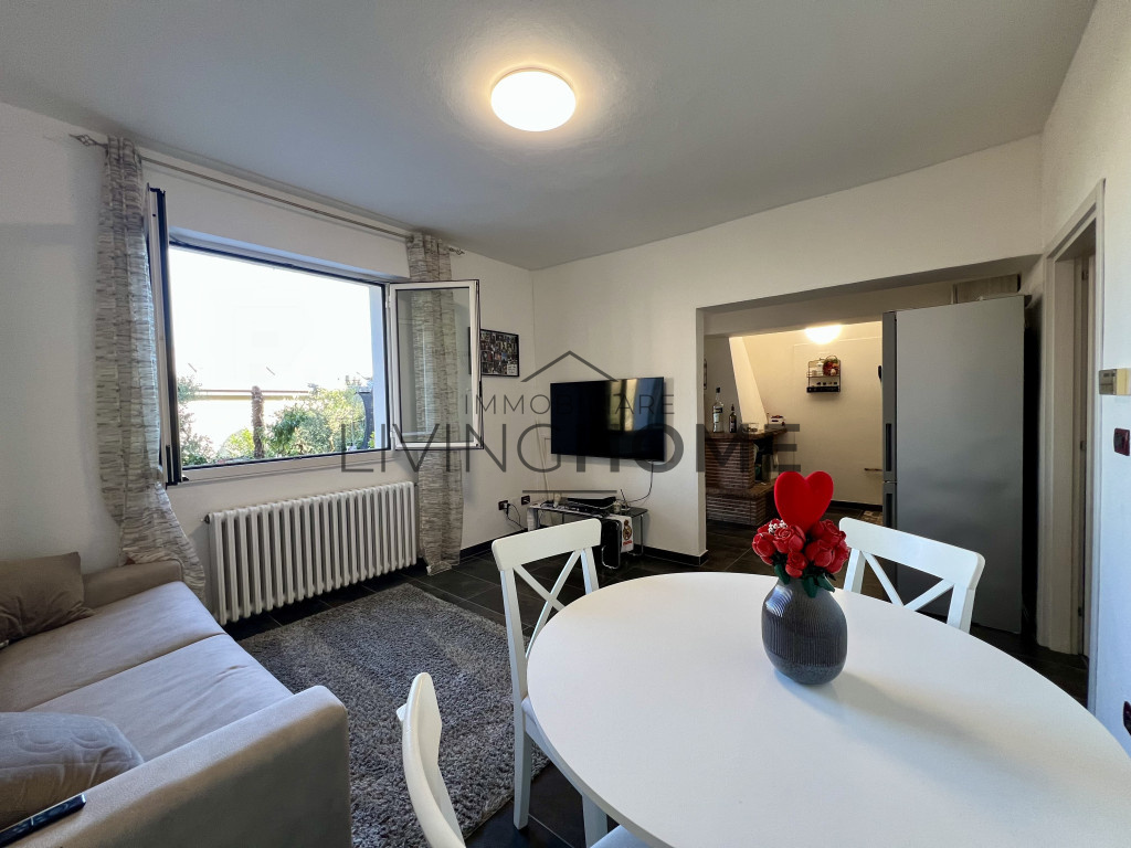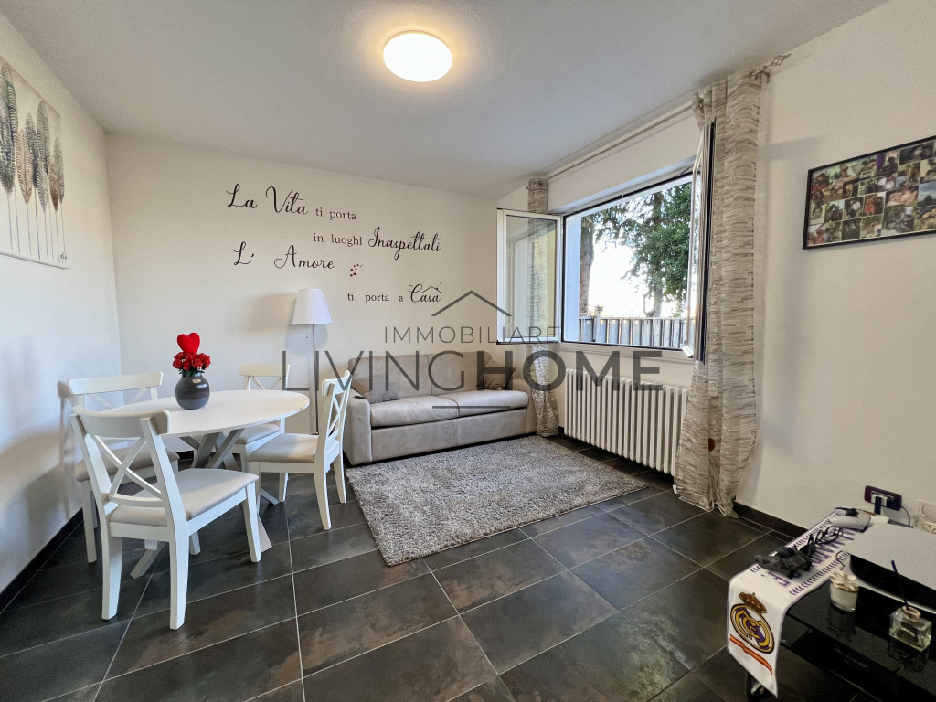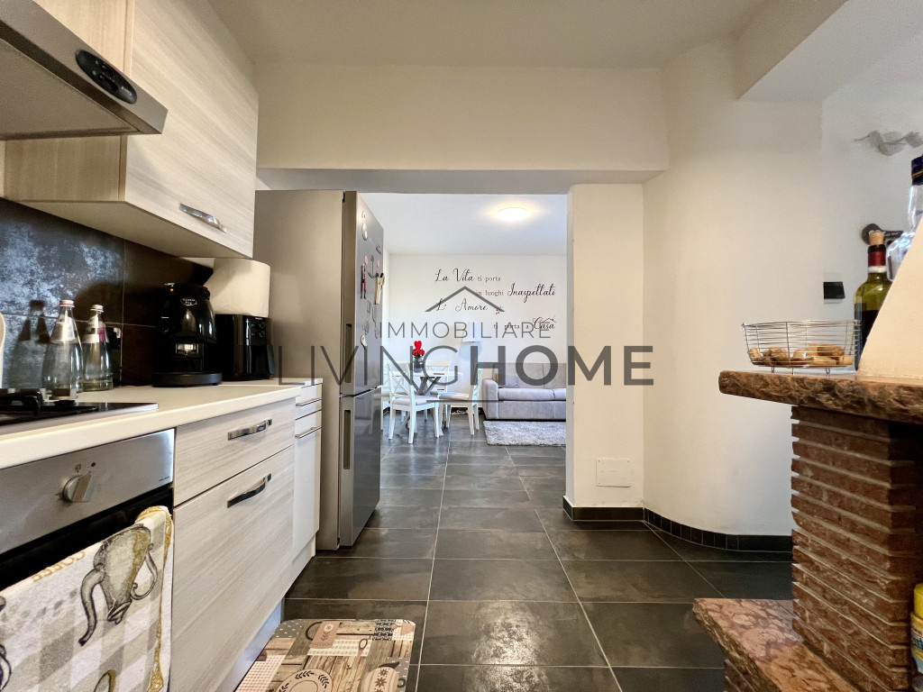 L'appartamento fa parte di un contesto condominiale di sole cinque unità e si presenta così composto: ingresso, soggiorno con angolo cottura e camino, disimpegno, camera da letto matrimoniale, bagno con box doccia e lavanderia.