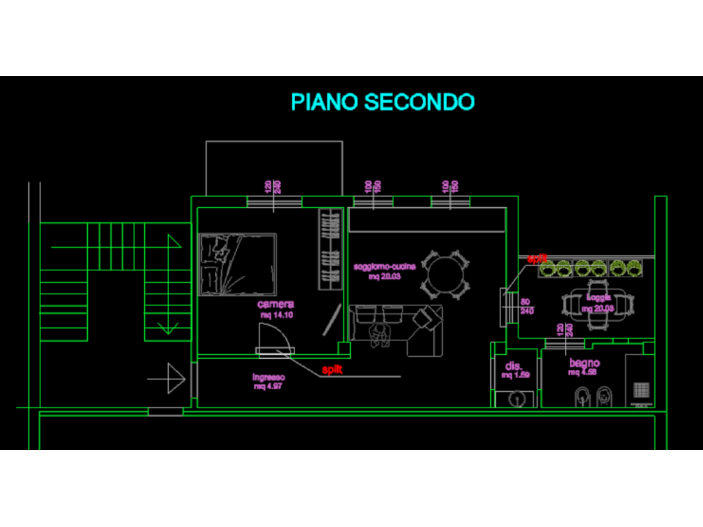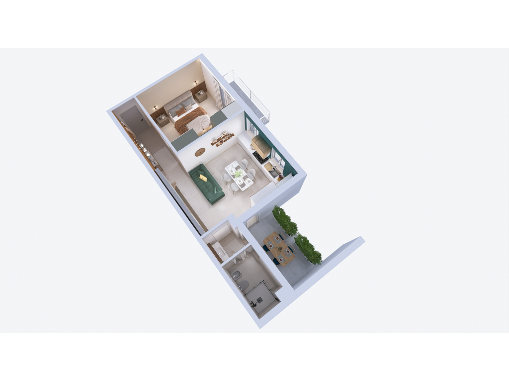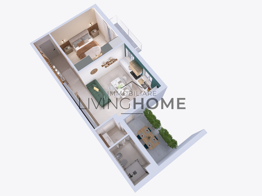 Soggiorno Cucina Open Space - Camere da letto matrimoniale - Bagno - Loggia