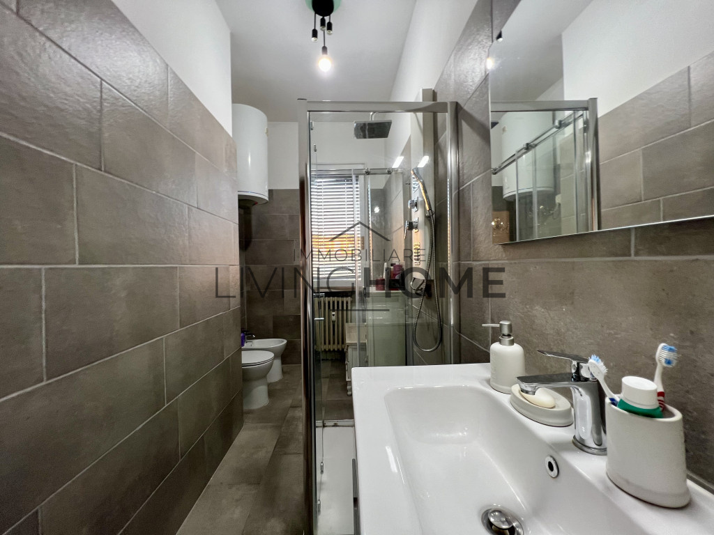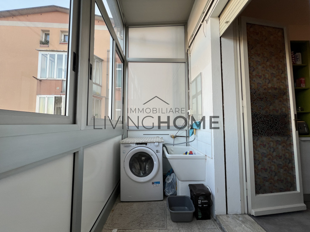 La soluzione si sviluppa su un unico livello e si presenta così composta: ingresso su disimpegno, soggiorno molto luminoso di circa 30 mq con balcone, cucina abitabile servita da un comodo balcone verandato in cui troviamo la zona lavanderia, camera da letto matrimoniale di 18 mq e camera da letto matrimoniale di 14 mq, bagno con box doccia e ripostiglio.