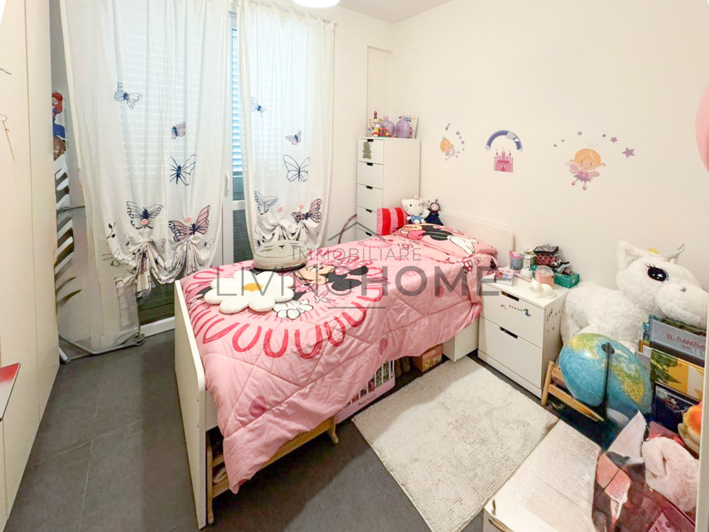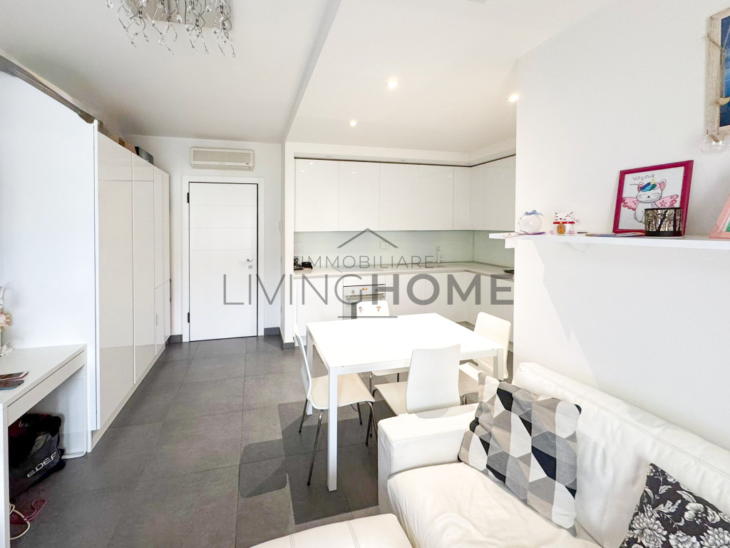 Gli ambienti sono luminosi e ben distribuiti: l’ingresso si apre su un'accogliente soggiorno con cucina open space, perfetto per vivere la zona giorno in modo funzionale e moderno. La zona notte comprende due camere da letto ben illuminate.