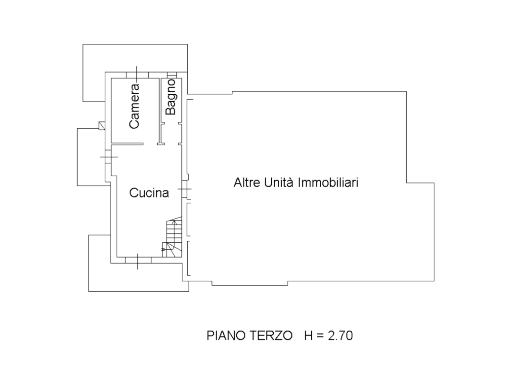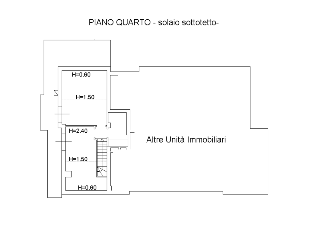 Piano quarto mansardato: 2 Vani uno camere da letto - 1 vano uso bagno